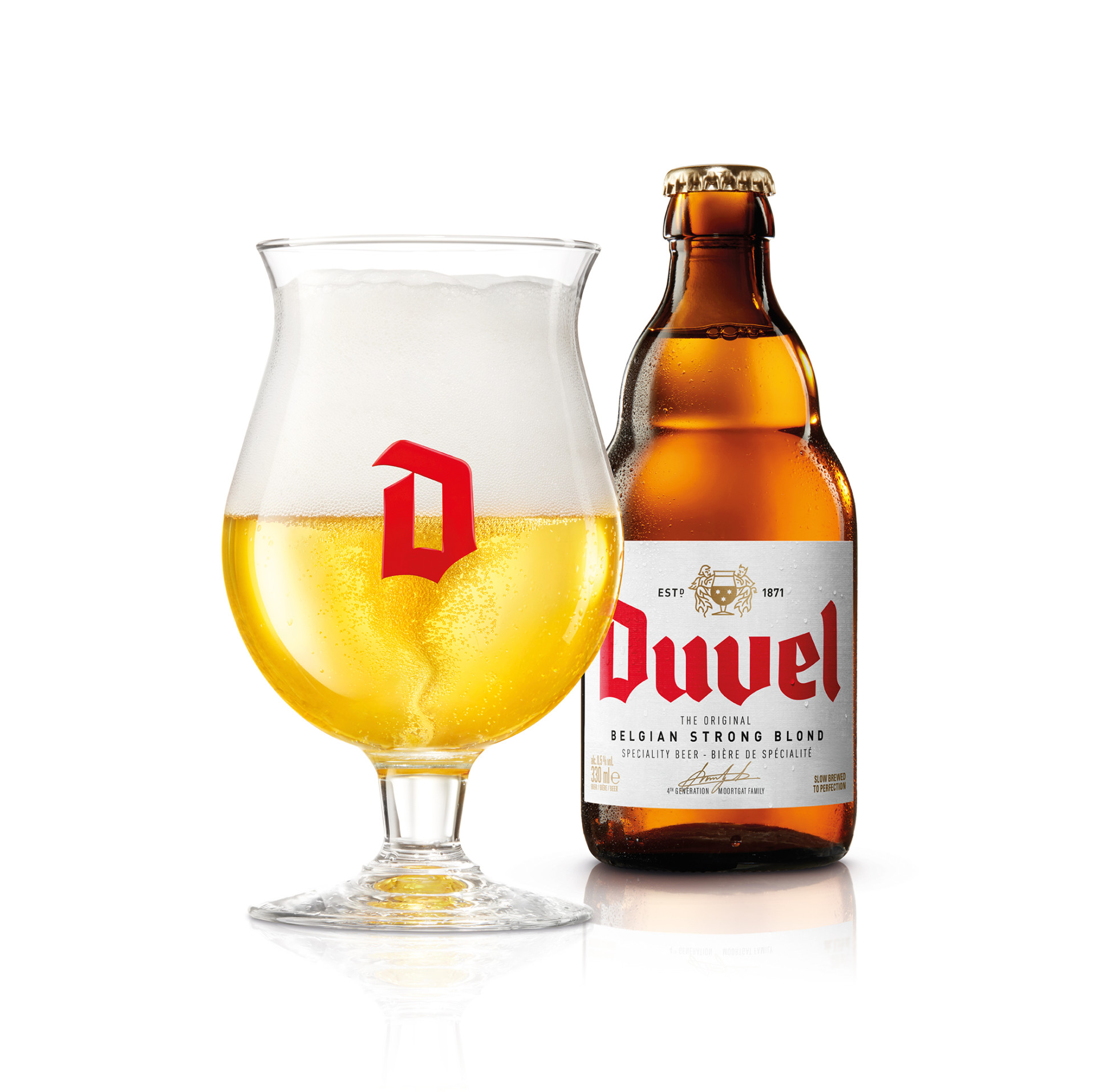 Duvel er en ikonisk belgisk strong golden ale, brygget af Duvel Moortgat. Øllen har en lys gylden farve med et kraftigt, hvidt skum og en livlig karbonering.