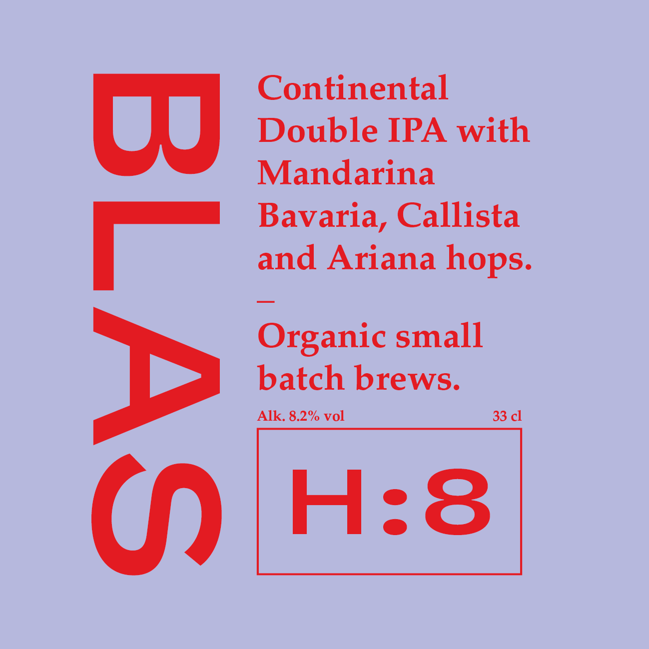 H:8 Continental Double IPA with Mandarina Bavaria, Callista and Ariana hops.