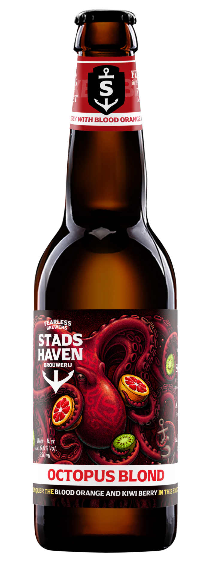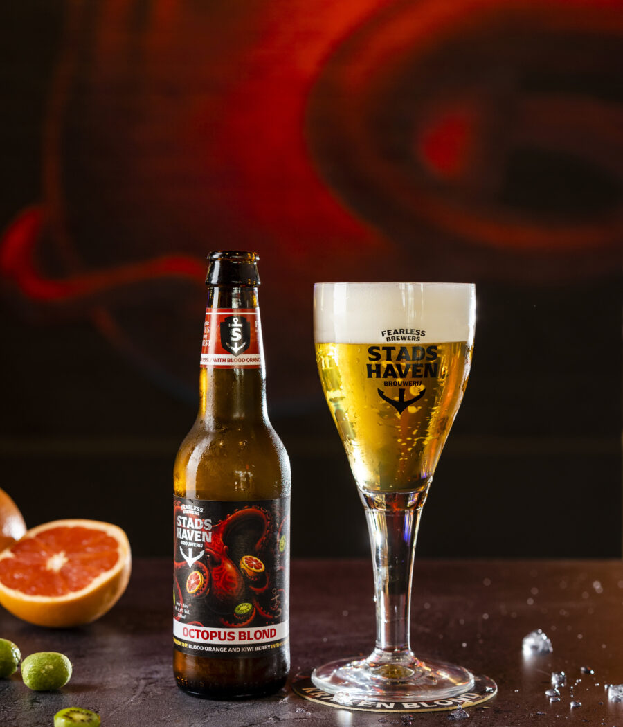 The Kraken is a large sea creature, created from sailor’s tales. He has tentacles capable of capsizing an entire ship. Our fearless crew heard about the myth, but decided to cross the North Atlantic at their peril. On the way to Siberia. There we found the ingredient for our soft fruity blonde beer: the kiwiberrry. Naturally, the beer is named after the myth, Giant ‘Octopus Blond’.