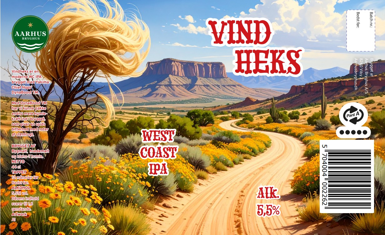 Vindheks er en moderne WC IPA brygget med Yakima Chief Hops’ Idaho-7 DynaBoost.